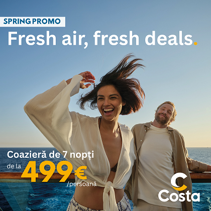 Primavara aduce pofta de vacanta, iar o croaziera este modul perfect de a o trai. In perioada 9 martie – 13 aprilie, poti rezerva croaziere Costa la tarife speciale, pentru plecari intre aprilie si noiembrie 2026.
