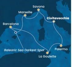 Civitavecchia, Genova, Marsilia, Barcelona, Cagliari, Naples, Civitavecchia