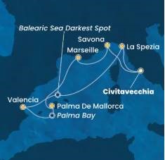 Civitavecchia, Savona, Marsilia, Palma de Mallorca, Valencia, La Spezia, Civitavecchia