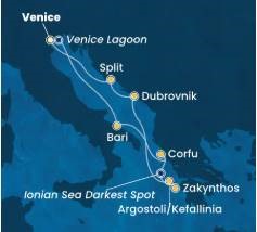 Venetia, Bari, Corfu, Zakynthos, Kefalonia, Dubrovnik, Split, Venetia