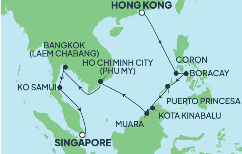 Hong Kong, Coron, Boracay, Puerto Princesa, Kota Kinabalu, Muara, Phu My Ho Chi Minh, Laem Chab...