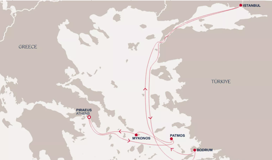 Pireu, Mykonos, Istanbul, Bodrum, Patmos, Pireu