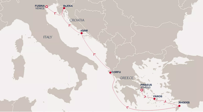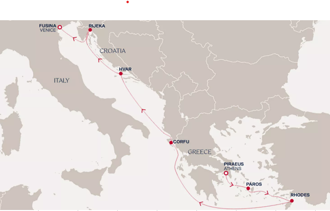 Pireu, Paros, Rodos, Corfu, Hvar, Rijeka, Venetia