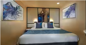 Aceste cabine sunt prevazute cu un pat matrimonial care poate fi transformat in doua paturi (la cerere, cu exceptia celor din cabinele pentru persoane cu dizabilitati), aer conditionat, baie cu dus, televizor, posturi de radio (disponibile pe canale TV), telefon si optional, conexiune la internet, contra cost pentru laptop, minibar, seif.