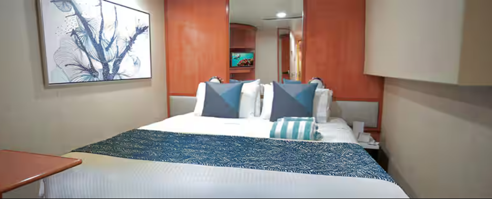 Aceste cabine sunt prevazute cu un pat matrimonial care poate fi transformat in doua paturi (la cerere, cu exceptia celor din cabinele pentru persoane cu dizabilitati), aer conditionat, baie cu dus, televizor, posturi de radio (disponibile pe canale TV), telefon si optional, conexiune la internet, contra cost pentru laptop, minibar, seif.