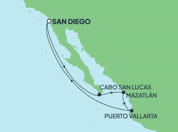 San Diego, Puerto Vallarta, Mazatlan, Cabo San Lucas, San Diego