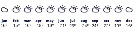 Briza oceanului mentine clima echilibrata tot timpul anului, iar ploile sunt rare si de scurta durata, concentrandu-se in special in lunile de iarna. Primavara si toamna se remarca prin zile senine, temperaturi confortabile si conditii excelente pentru plimbari, explorari urbane sau excursii in natura.