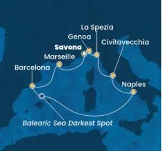 Civitavecchia, Cagliari, Napoli, Barcelona, Civitavecchia, Genova, Marsilia, Barcelona