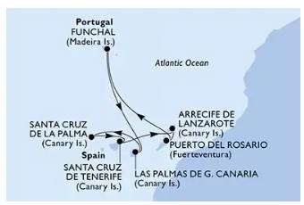 Santa Cruz de Tenerife, Arrecife, Agadir, Las Palmas Funchal, Santa Cruz de Tenerife